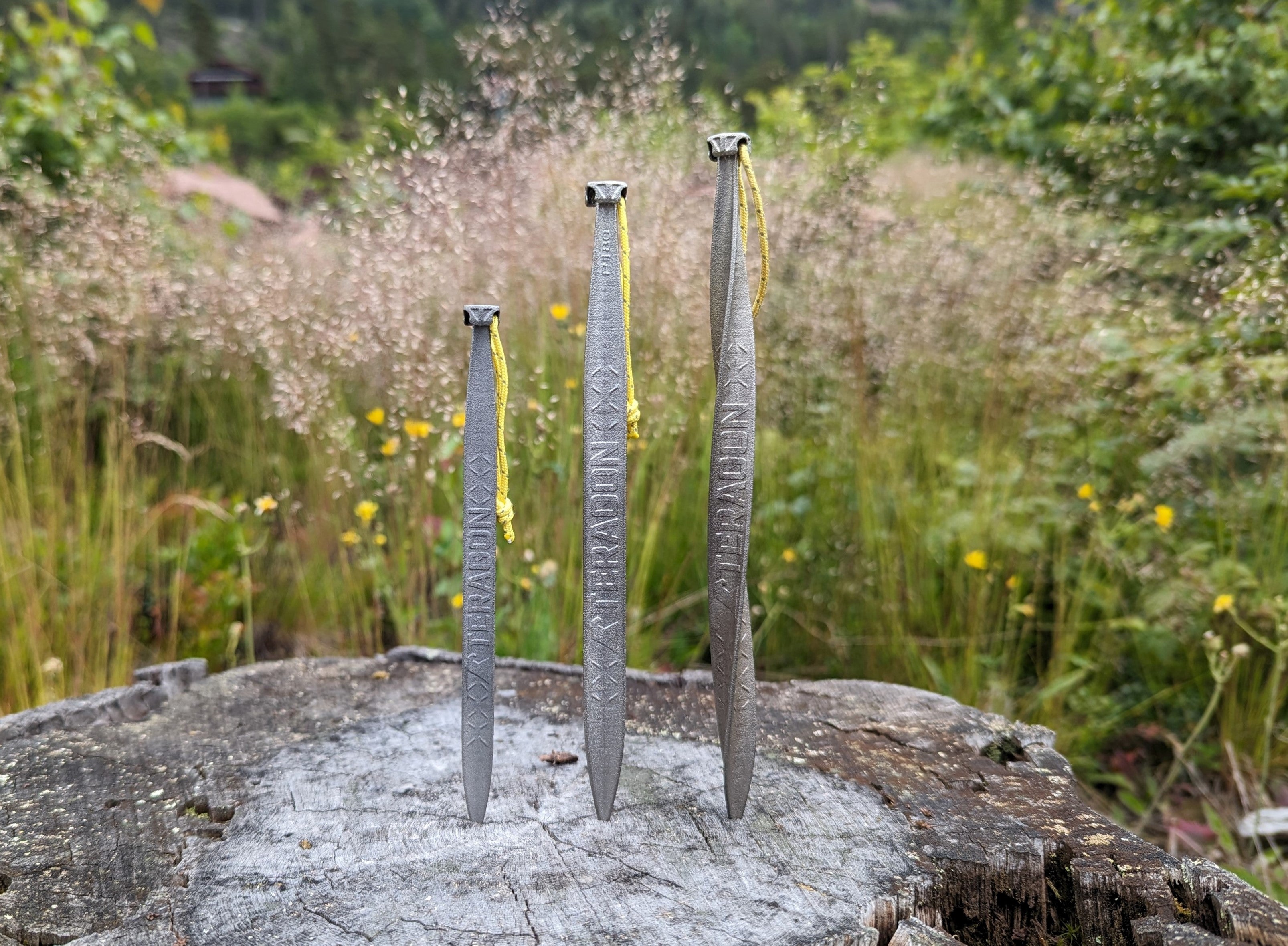 Teragon Gear are excited to present the game changing Pioneer series tent stakes. Our stakes comes with unmatched strenght to weight ratio, and we are certain that you will be just as excited as us when you get a closer look.