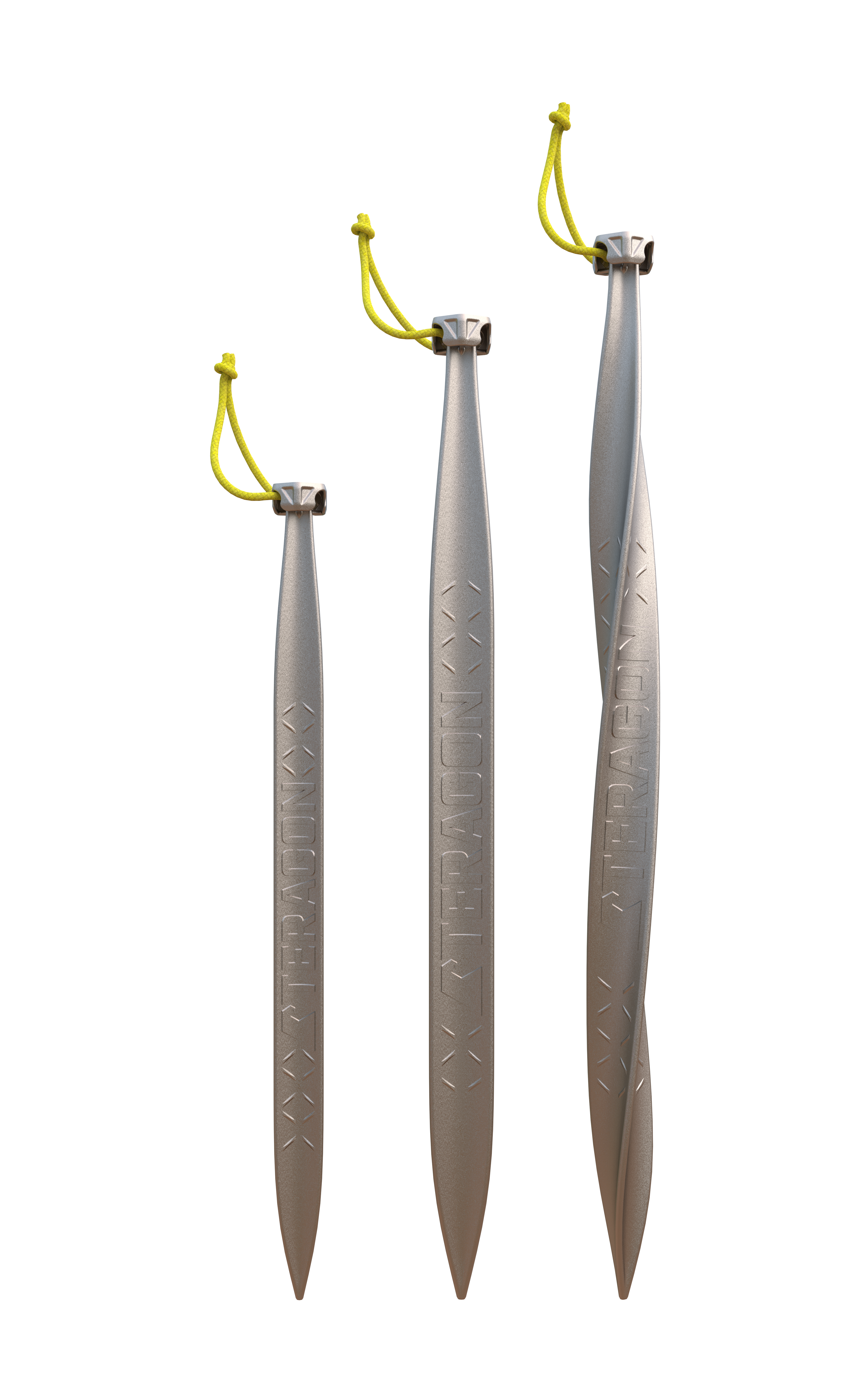 The Pioneer Torque is our shot at making the ultimate tent stake for loose conditions. Based on the Pioneer 2 cross section, the Pioneer Torque adds more length and introduce a helical profile to further increase holding power. At the same time we are keeping the weight well below 10g. The Pioneer Torque is the latest addition to out tent stake line-up thanks to the possibilities of additive manufacturing.